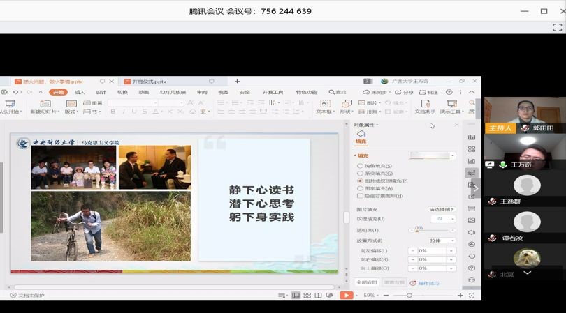 这次团校“云开班”仪式不仅使参会团员深刻理解“共同战疫,青年担当”的主题精神,加强青年团员的思想政治建设,更培育了太阳成集团tyc151cc青年团员奋发图强、甘于奉献的精神。第二期团校学员,经济学1801班的雷舒婷表示:在这次团校和大家的交流和学习中,我更加坚定了自己服务社会,为集体奉献的初心,我要向王万奇老师学习,在新时代的背景下积极作为、勇于奉献。