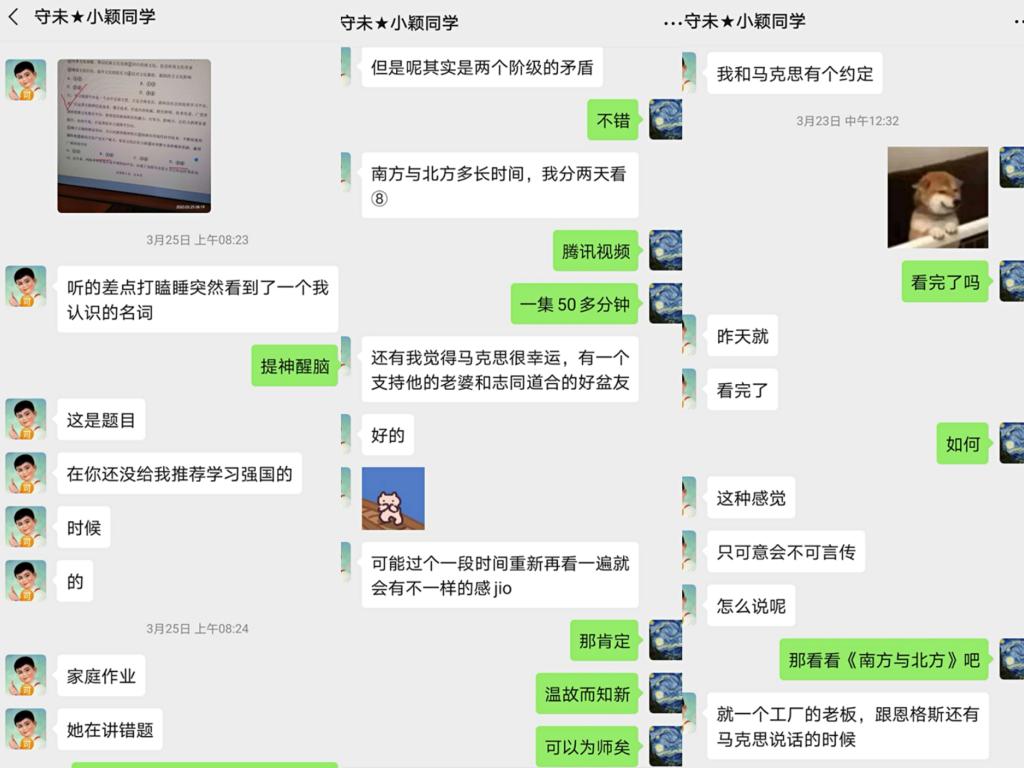 小颖是一位高二同学,受疫情影响学习节奏被打乱,家长忙于工作也无法经常陪伴她学习。通过交流发现她思维活跃,喜欢交流探讨式学习,她觉得通过讨论与互相监督记忆更深刻,学习也更高效,于是我们便协商制定了学习计划。她六选三科目文科偏多,这对于出生于理科的我挑战不小,于是我基于学习强国、电影、公众号文章与她一起探讨分析,互相学习。渐渐地我发现她兴趣非常广泛,绘画、音乐、篮球都爱不释手,这让我们拉进了距离,产生了很多共同话题。通过话题引导探讨式学习,学习阻力减小了很多。后来,家长反馈说她学习时比以前更加专注了,希望我继续鼓励她。我喜悦的同时也充满了感动。