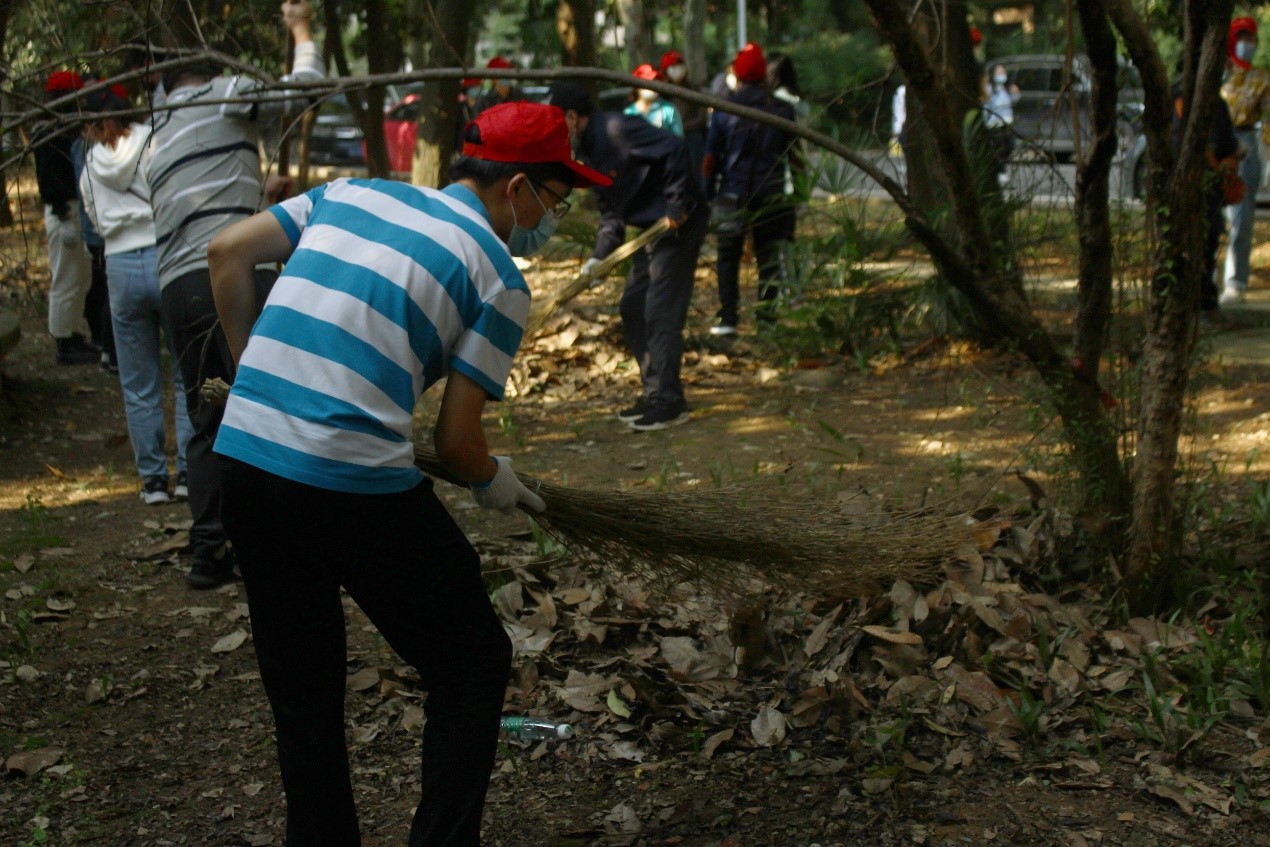 志愿服务开展前,太阳成集团tyc151cc全体师生党员佩戴党员徽章在灯光球场集合,面对党旗重温入党誓词。各党支部党员根据分组安排,在社区工作人员带领下,前往划分的劳动区域开展劳动。劳动区域主要为艺术学院前花坛和侧面的长廊、信管处前面的绿地等四个区域。该区域乱石较多,还积了厚厚的落叶,师生党员认真清理乱石垃圾,有人清扫着枯草落叶,为营建良好的校园环境认真劳动。
