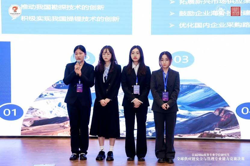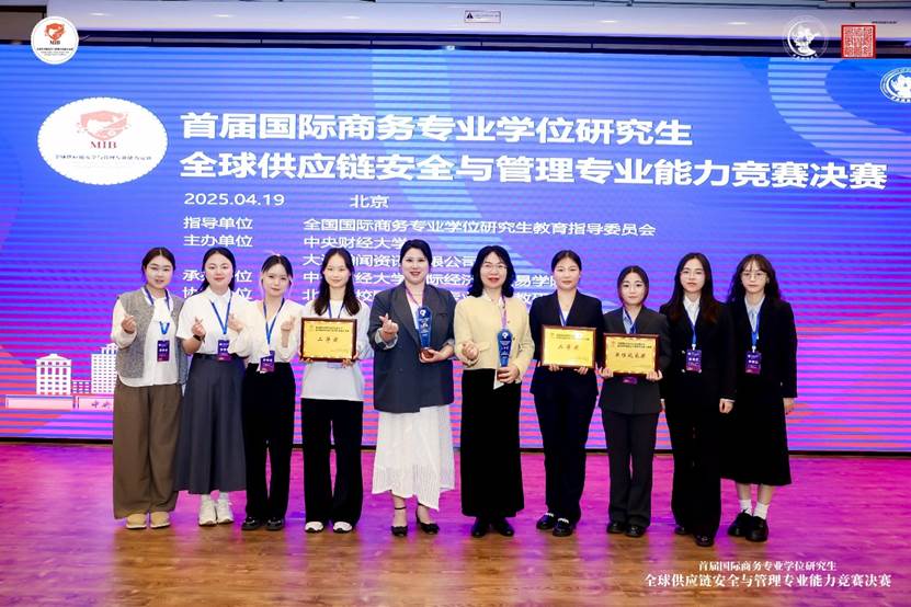 4月19日,首届国际商务专业学位研究生全球供应链安全与管理专业能力竞赛决赛于中央财经大学圆满落幕!此次比赛中,由喻春娇老师和宋怡茹老师分别指导的两支参赛队伍表现优异,从全国74所高校的183支队伍里脱颖而出,成功闯入决赛。最终,两支队伍均荣获全国二等奖,其中邓紫琪、徐潇桐、张玉琳和罗颖所在团队在“重要原材料安全”赛道中斩获仅有的两个最佳风采奖之一。
